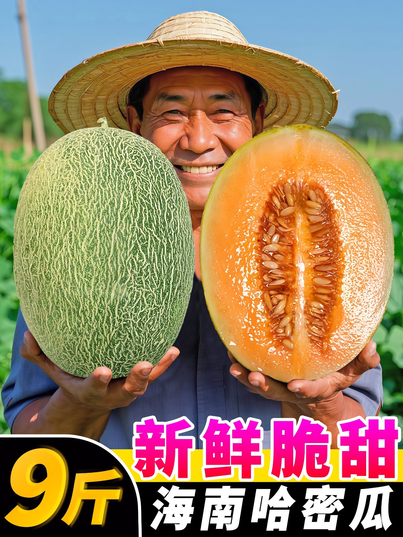 • 商品名称:海南哈密瓜新鲜脆甜9斤水果疆西州蜜瓜25号老汉瓜一整箱网纹甜瓜