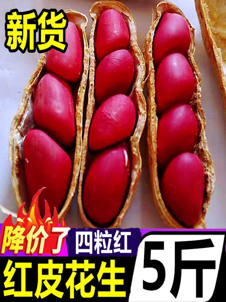四粒红带壳红皮花生5斤2026新货新鲜干花生米红衣农家自种生花生