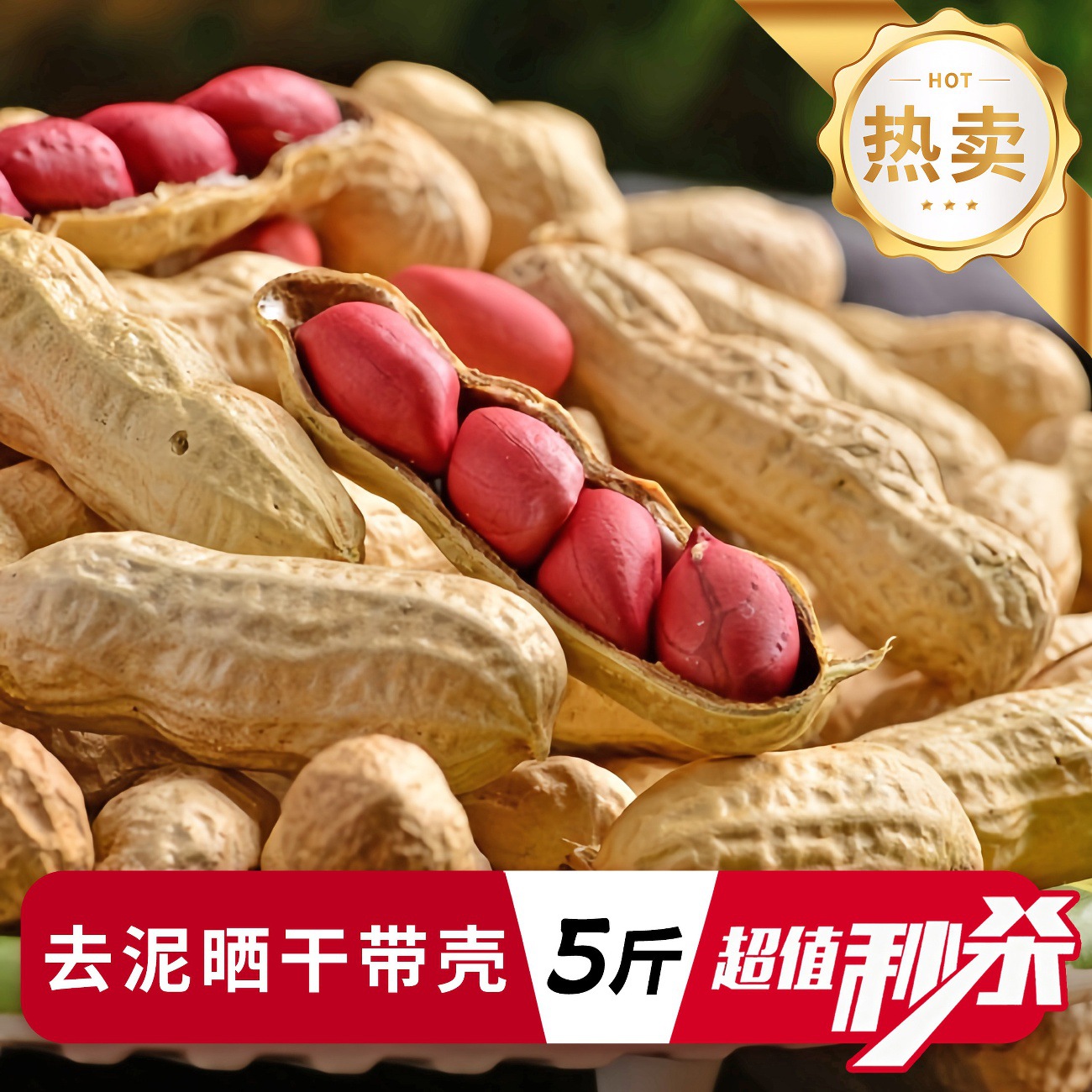 • 商品名称:四粒红带壳红皮花生5斤2026新货新鲜干花生米红衣农家自种生花生