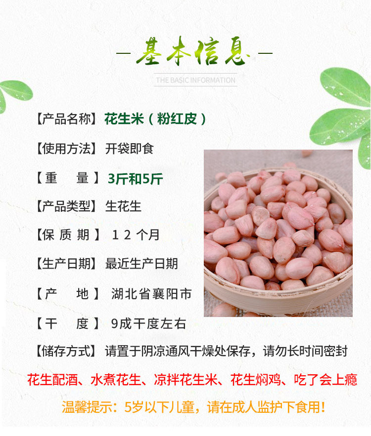 • 商品名称:2026今年新货白沙农家生花生米生的粉红皮新鲜下酒菜不带壳生花生