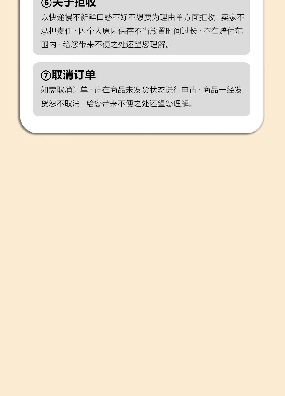 换货处理周期:自接收到问题商品之日起 15 日之内为您处理完成;
