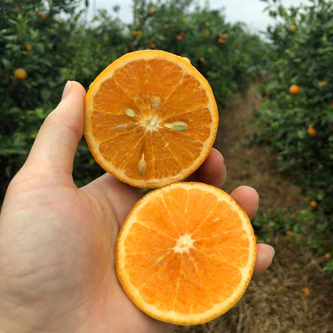 “甜蜜如初,阳光不改”这是沃柑给我的印象,沃柑是由"坦普尔"橘橙与"丹西"红橘的杂交种而来,它身披耀眼橙色果皮,扁圆身躯蕴藏橙红色果肉,浑身上下经络分明,囊衣淡透,绵层柔软,皮薄易剥,剥开刹那,一种魂牵梦绕的柑橘味围绕在周身。掰开果肉拿一瓣入口,一股清冽的汁水充满口腔,甘甜从舌尖沁入心肺,用舌头轻轻一抿就能化掉一般,柔若无渣的水嫩口感此生铭记。
