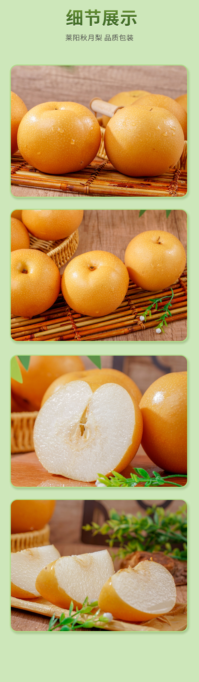• 商品名称:批发莱阳秋月梨新鲜 水果5斤脆甜多汁当季采摘整箱冰糖山东秋月梨