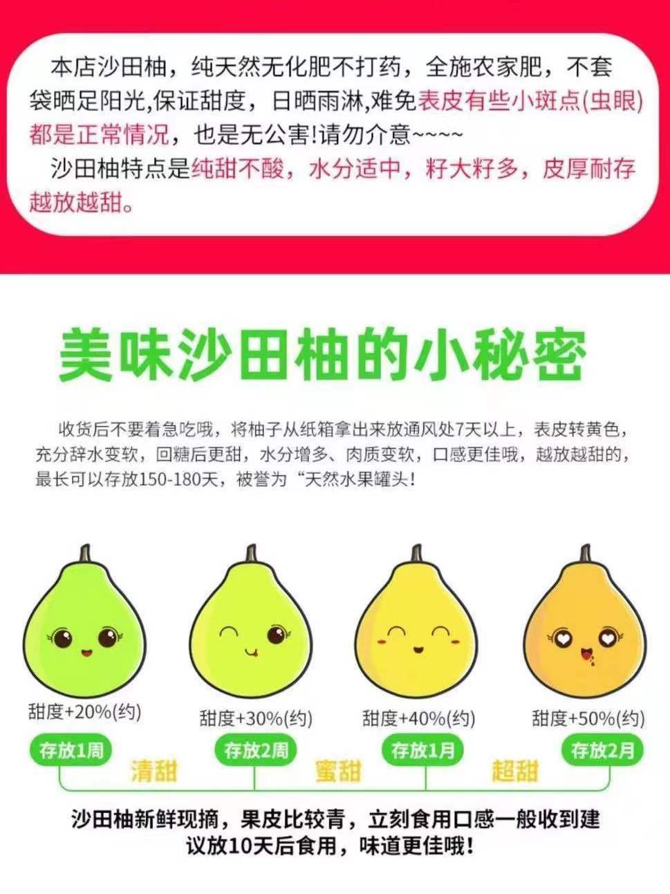 温馨提温馨提示:沙田柚特征:皮糙、皮厚、大籽、多籽、水分一般(不是打大水分的品种)此类现象是沙田柚的特征不在售后范围内!