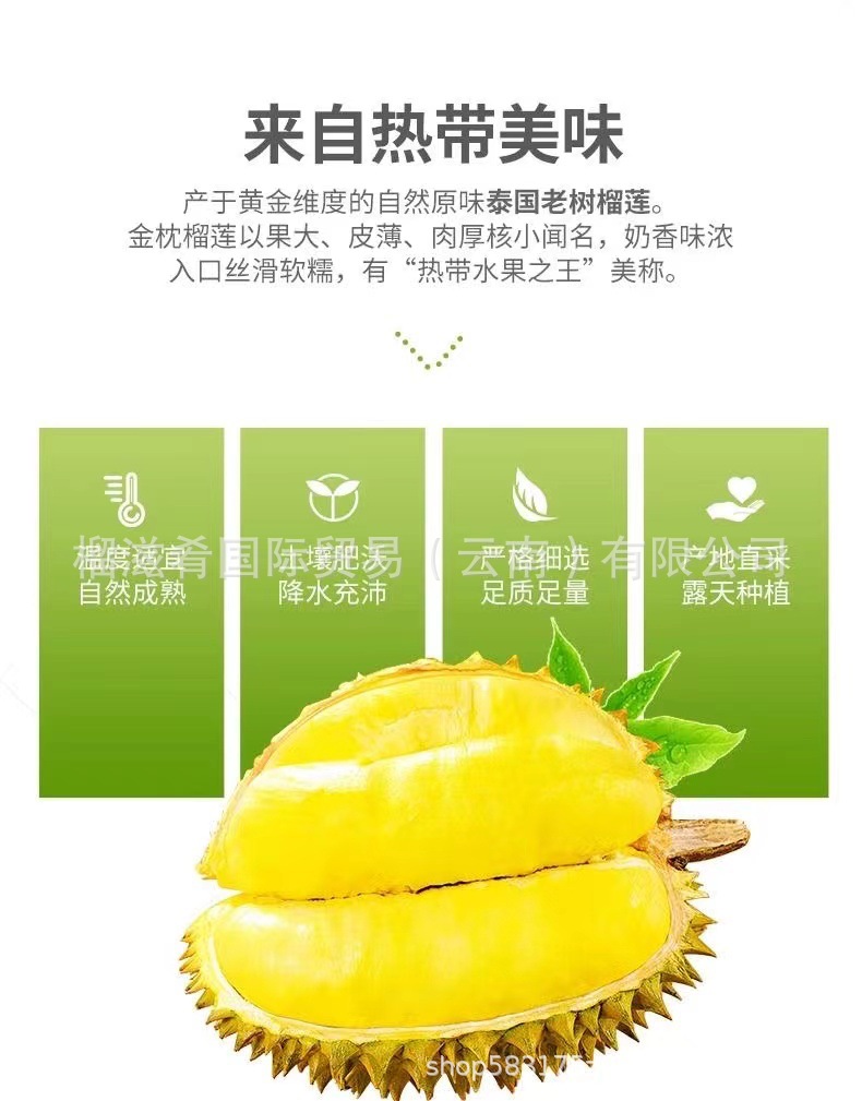 • 商品名称:泰国金枕榴莲现货整个带壳新鲜榴莲 一件代发
