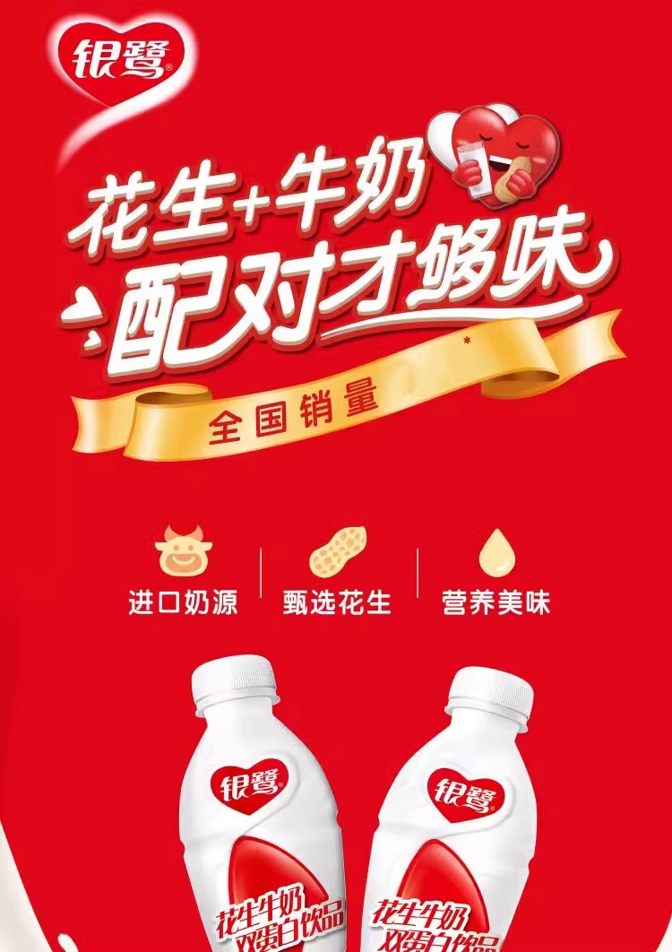 • 商品名称:银鹭花生牛奶450ml*15瓶整箱早餐奶营养复合双重重蛋白饮料礼盒装