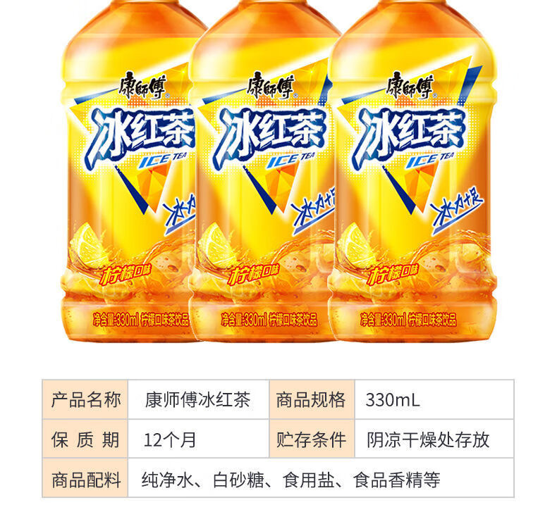 • 商品名称:康师傅饮料冰红茶柠檬味红茶330ml*6瓶整箱装家用囤货夏季饮品