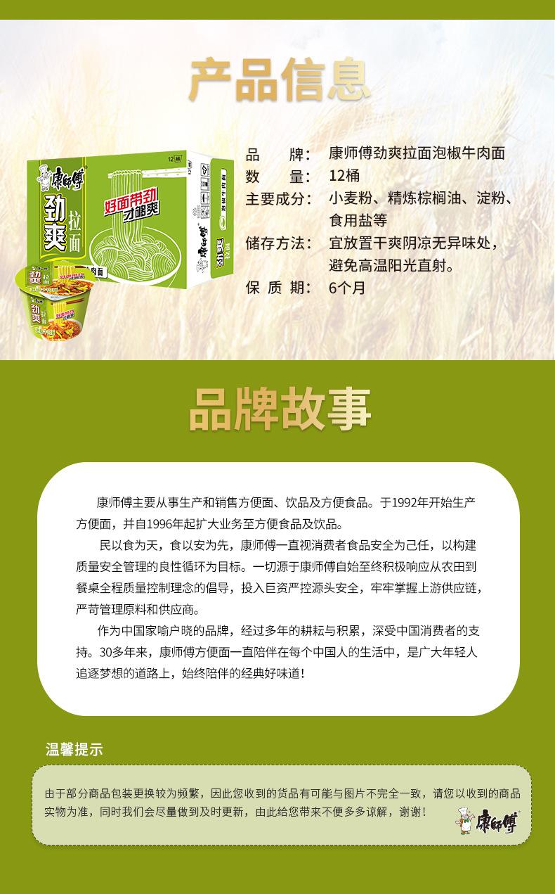 • 商品名称:康师傅方便面12桶劲爽拉面经典泡面泡椒红烧香辣牛肉整箱桶装批发