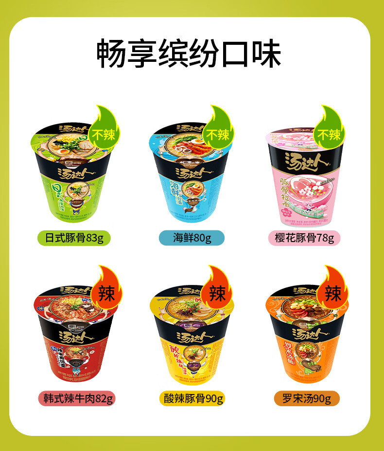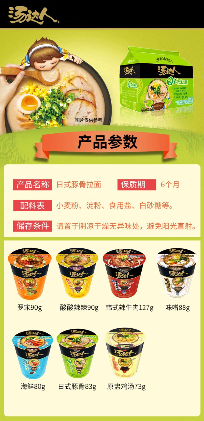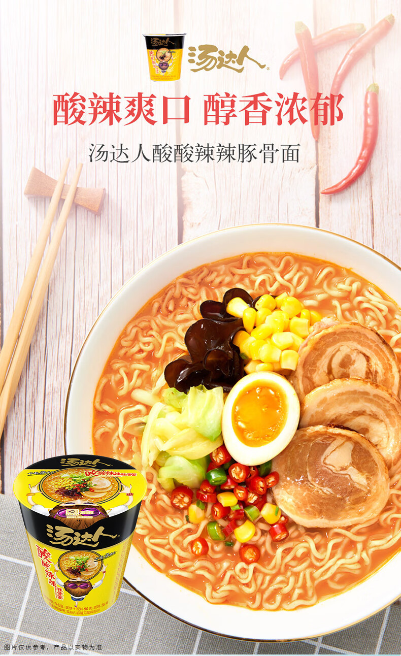 • 商品名称:统一汤达人杯面方便面日式酸辣豚骨海鲜拉面老母鸡汤泡面免煮速食