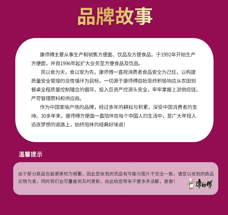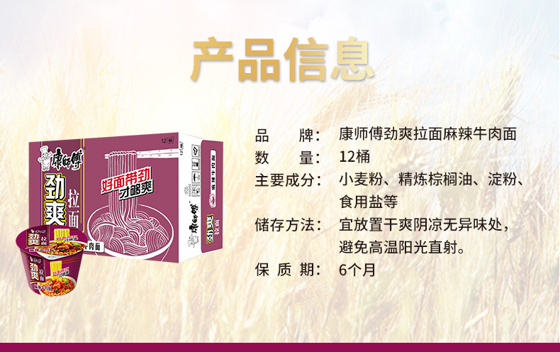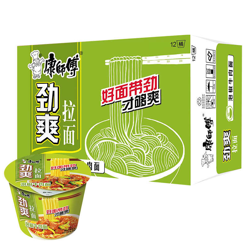 • 商品名称:康师傅方便面12桶整箱批发桶装泡面劲爽红烧泡椒酸菜拉面夜宵速食