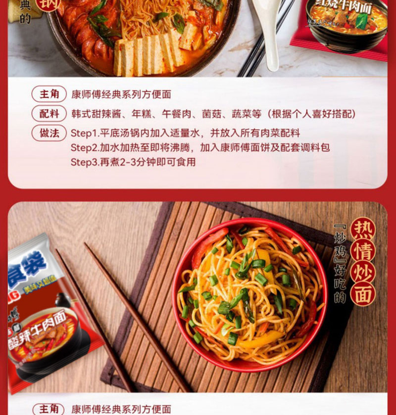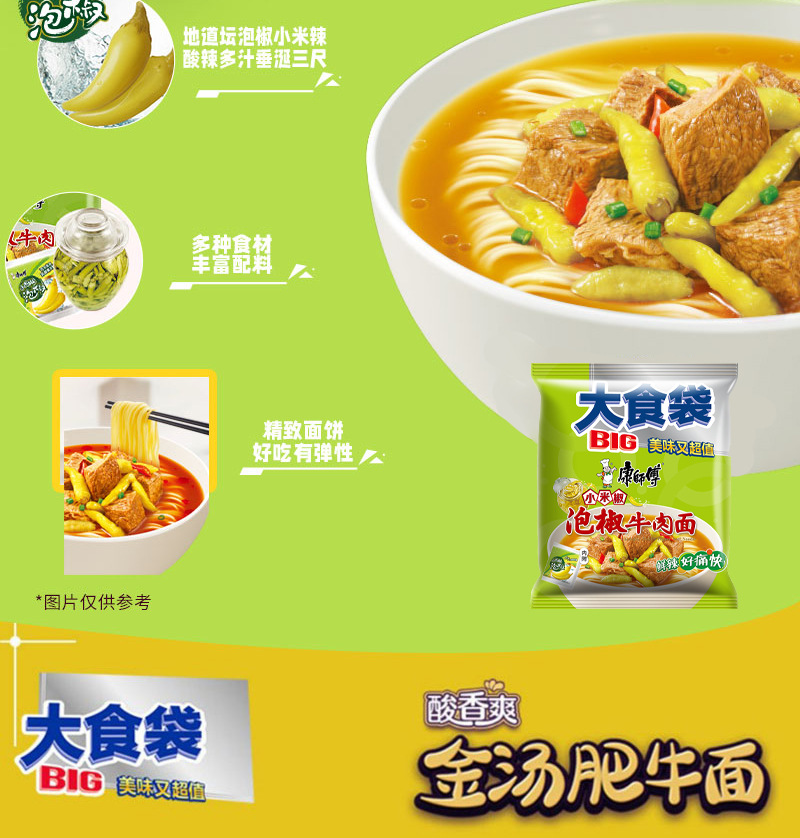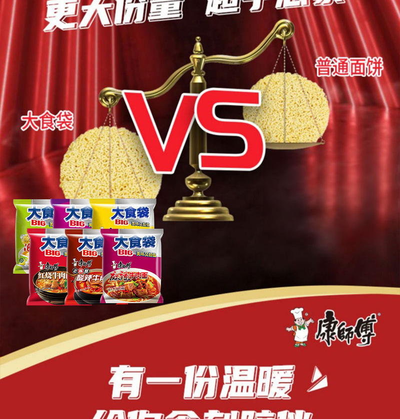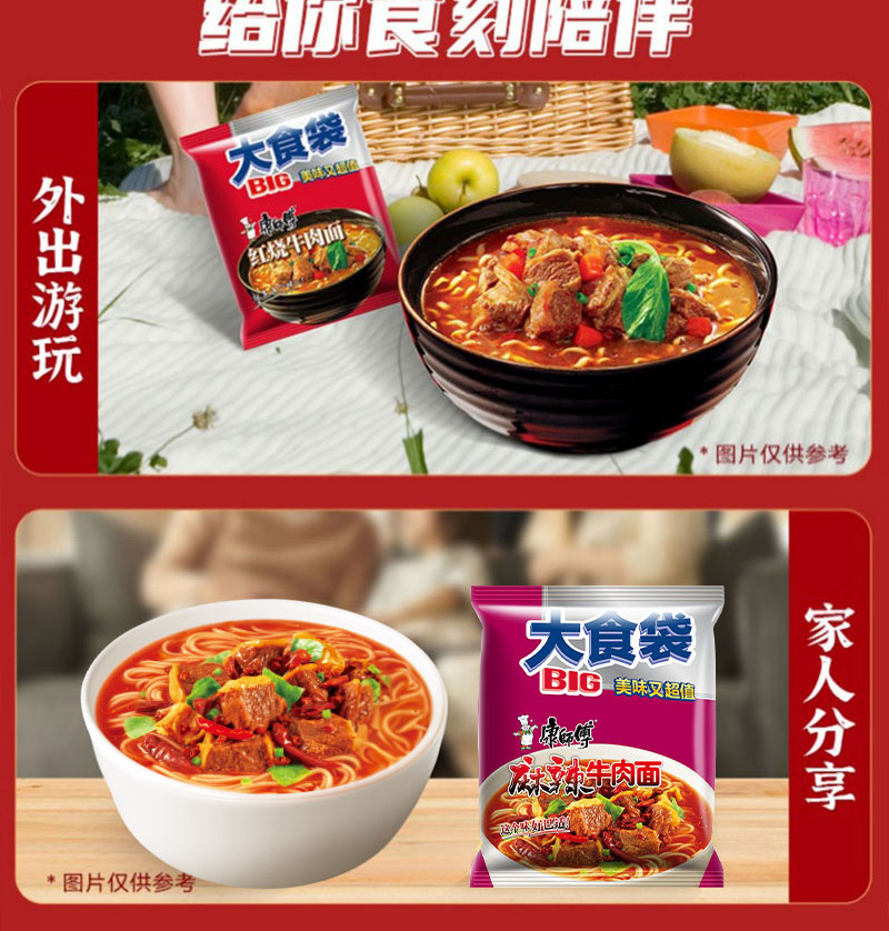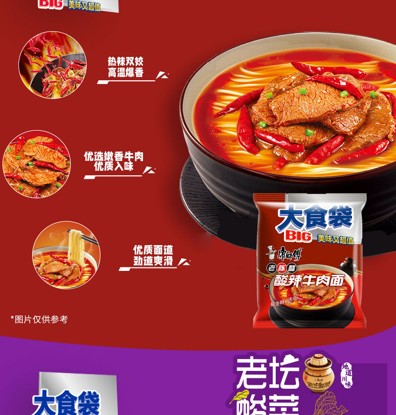 • 商品名称:康师傅大食袋红烧牛肉整箱24袋酸菜麻辣方便面速食夜宵批发汤面
